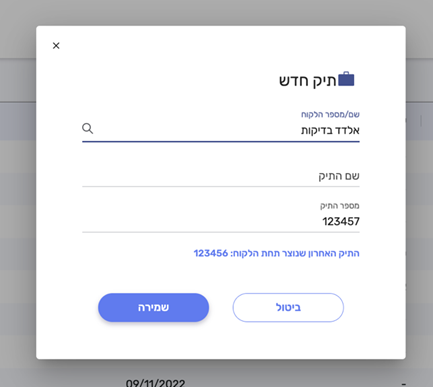 ניתן לערוך את מספר התיק. יש לשים לב להזין את שם התיק.