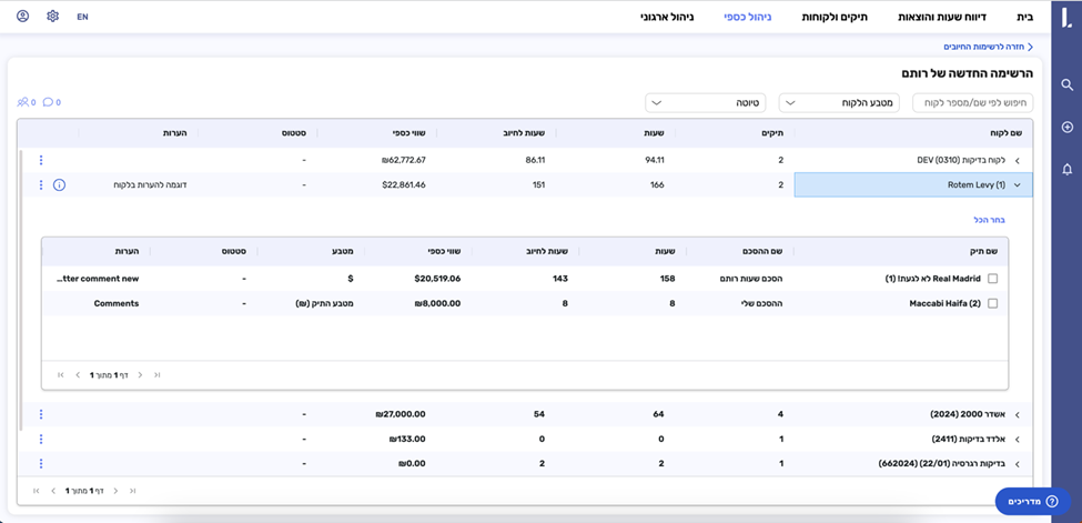 בלחיצה על שם הלקוח למשל, תפתח לנו חלונית חדשה של מסך הלקוח.