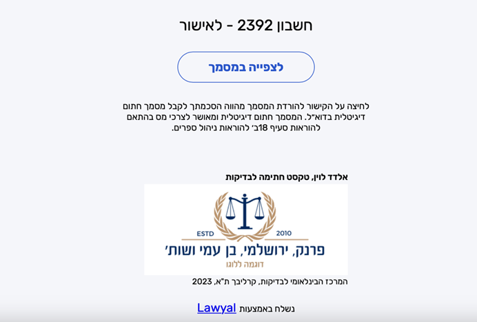במידה ולא הוגדרה חתימה אישית למשתמש, המערכת תציג את הלוגו של הפירמה.