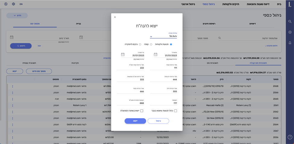 ניהול כספי > מסמכי מס – ייצוא להנה״ח – חברת בת