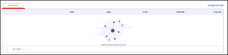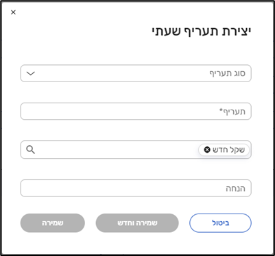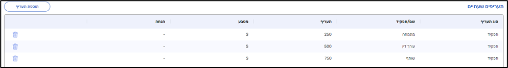 באמצעות כפתור 'הוספת תעריף' ניתן ליצור תעריף שעתי חדש: