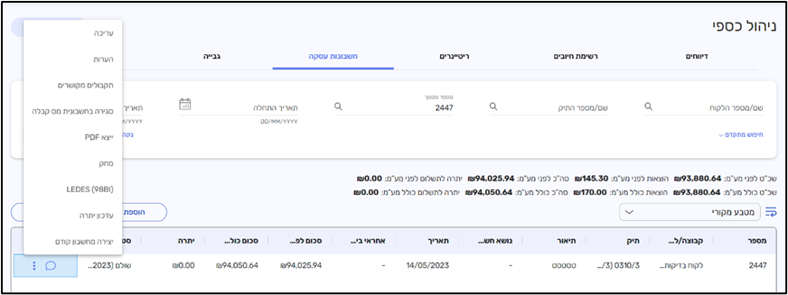 - חיפוש החשבון בניהול כספי > חשבונות עסקה