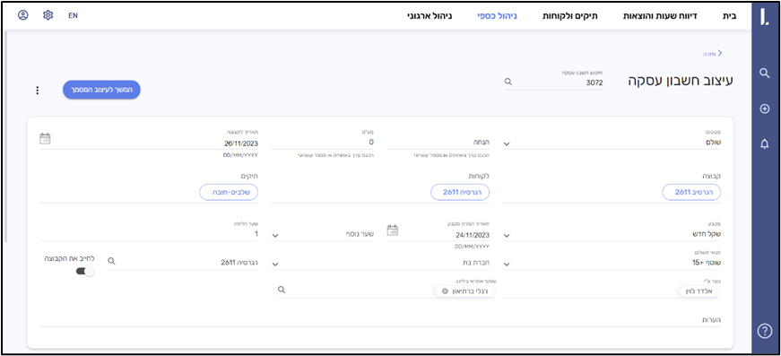 הצגת אחראי בילינג ושדה נוצר ע"י בעמוד הראשי של החשבון
