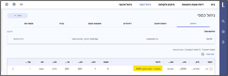 ביצירת מקדמה (מחשבון או חשבונית) – תיאור החיוב שנוצר יכלול את מספר וסוג החשבון / חשבונית ממנו נוצר