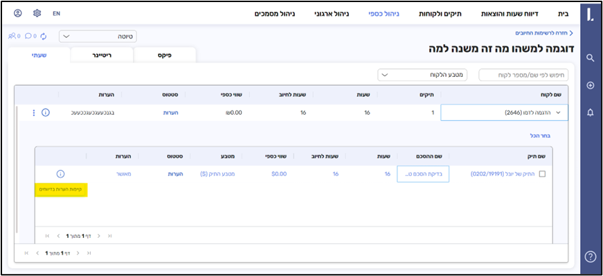 סימון i על שורה של תיק שבחיובים שלו (ברשימה) הוזנו הערות