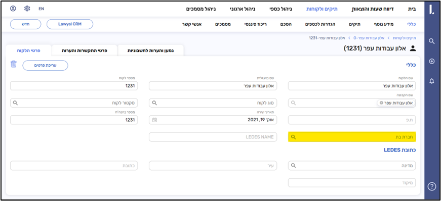 - שיוך תיק או לקוח לחברת בת