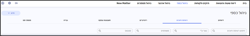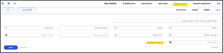 כברירת מחדל יוצגו רק תיקים פעילים.