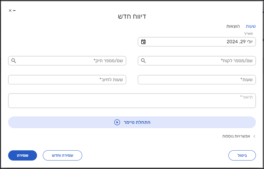 דיווח שעות והוצאות