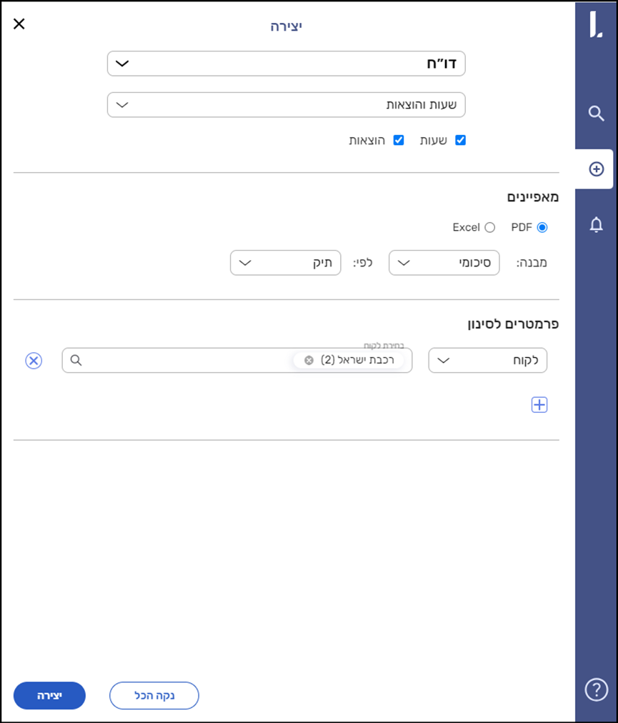 דוגמה לדו"ח שניתן לייצא כך: