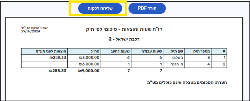 נוספה אופציה ל"שליחה ללקוח", כמו שיש בחשבונות ומסמכי מס.