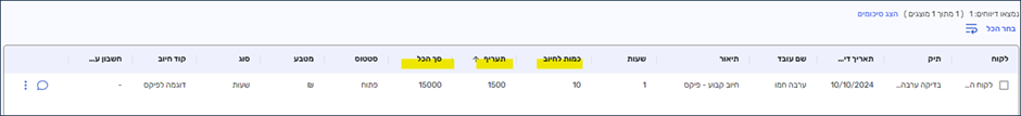 הדיווח ירשם כשורת שכ"ט לפי 1500 כפול מספר כמות החיוב