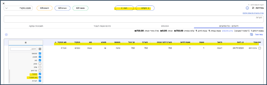 א. נוספו עמודת תפקיד, סוג תפקיד ותעריף לפני הנחה. ניתן להוסיף לסרגל - מוסתרות כברירת מחדל.