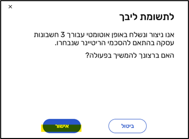 לאחר שנלחץ על שליחה במייל נקבל הודעת פופ – אפ, יש לאשרה והחשבונות ישלחו בהתאם.