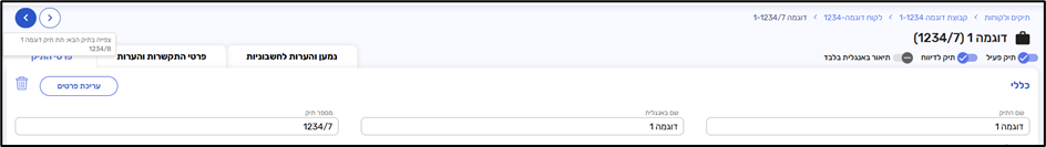 בעמוד של תיק – ניתן לעבור בעזרת חיצים לתיק הבא/הקודם תחת אותו הלקוח