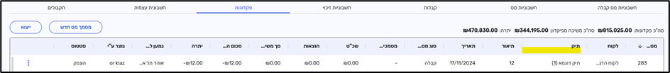 נוספה עמודת תיק בטבלה.