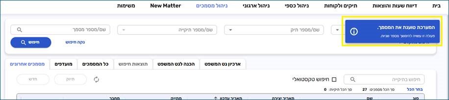 - על מנת לשפר את חווית השימוש, הוספנו חיווי בעת פתיחת מסמך, וכעת בלחיצה על פתיחת מסמך תופיע ההודעה הבאה: