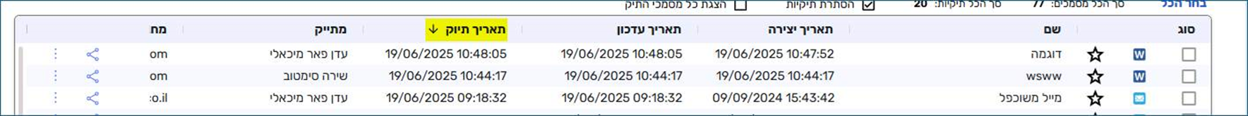 - כך, תוכלו למיין את המסמכים גם לפי התאריך בו הם תויקו למערכת: