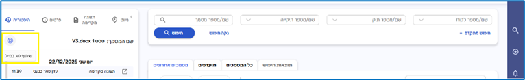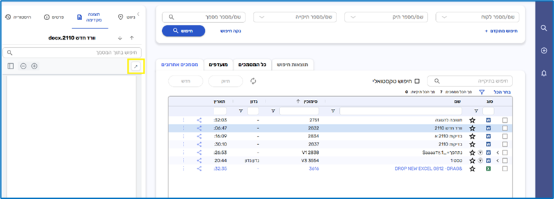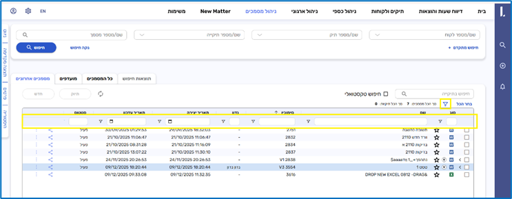 - הוספנו מסננים בתוך טבלת המסמכים, כך שניתן לבצע סינון גם ישירות מטבלת המסמכים ולא רק מחלון החיפוש המתקדם.