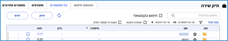 - העלאה ומעבר לתיקייה - תיוק של המסמך ומעבר לתיקייה המבוקשת לתיוק בסיום.