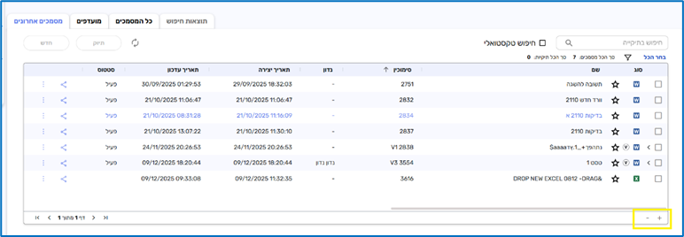 - אפשרות הגדלת שורות המסמכים בטבלה: