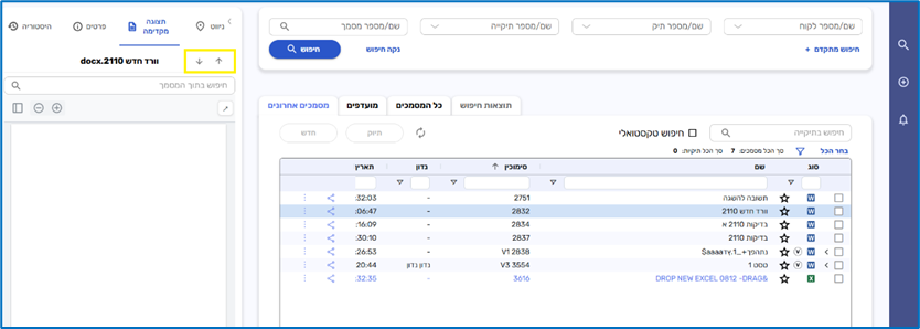 - הוספנו אפשרות לדפדף בין המסמכים בתצוגה המקדימה, באמצעות החיצים שבחלונית: