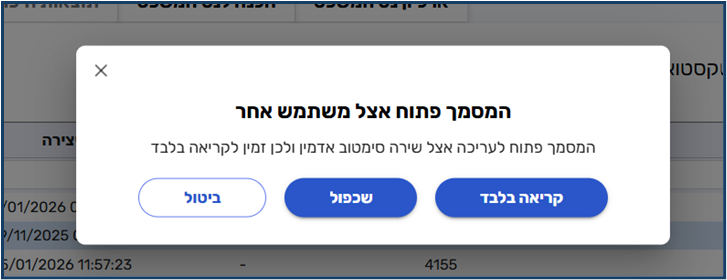 בלחיצה לפתיחת מסמך שנעול לעריכה, נוסף חלון חדש המאפשר לפתוח מיד את המסמך לקריאה בלבד או לבצע שכפול למסמך.