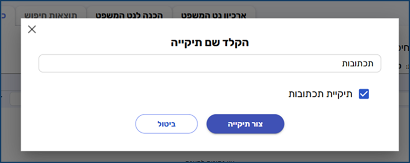 בלחיצה על הצ'ק בוקס "תיקיית תכתובות", שם התיקייה יוזן אוטומטית לתיקיית "תכתובות".
